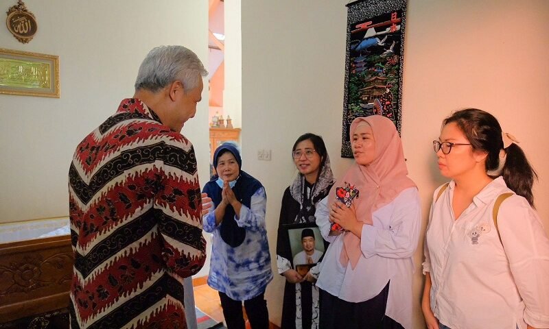 “Saya menyampaikan duka cita, mudah-mudahan husnul khotimah,” kata Ganjar kepada keluarga korban, termasuk istri almarhum Adrianus Aribowo.