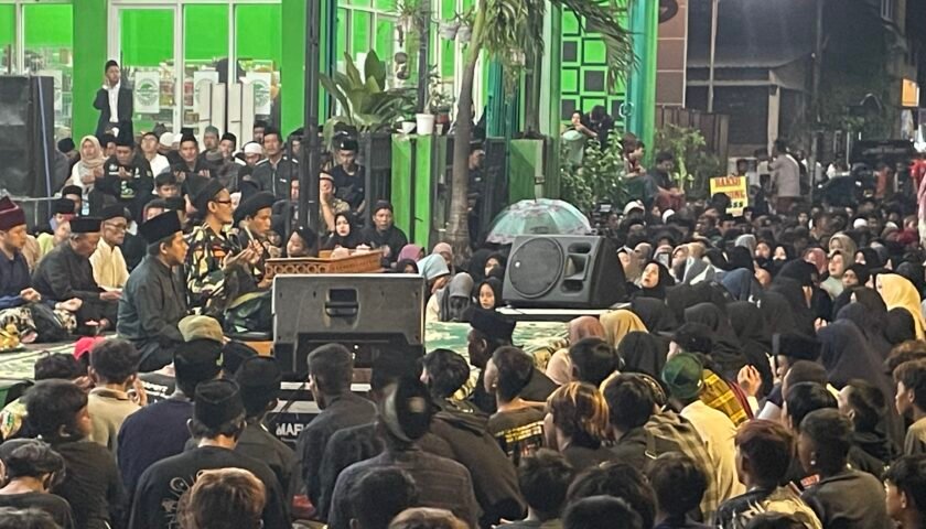 Para jamaah tumpah ruah memenuhi area Ponpes sejak isya. Mereka secara khidmah berzikir dan berselawat hingga tengah malam.***