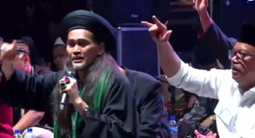 “Ganjar pilihan kita, calon presiden boleh ada 3, tapi saya akan pilih no 3, ” kata pendiri Mafia Sholawat Kiai Haji Mohammad Ali Shodiqin, yang akrab disapa Abah Ali atau Gus Ali Gondrong.