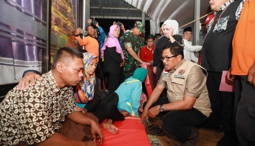 PEKALONGAN – Penjabat Gubernur Jawa Tengah Nana Sudjana meninjau lokasi banjir bandang di Desa Wangandowo, Kecamatan Bojong, Kabupaten Pekalongan, pada Kamis (14/3/2024) malam.