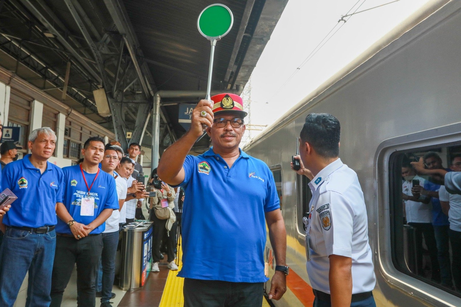 Penjabat Gubernur Jateng Nana Sudjana berkesempatan memberangkatkan langsung warganya menggunakan Kerata Api Jaka Tingkir di stasiun tersebut.
