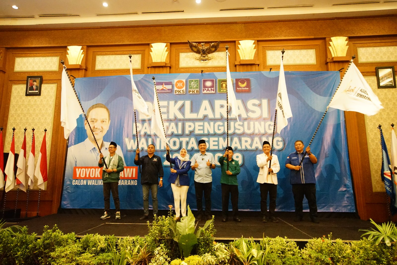 Dalam deklrasi tersebut, Yoyok Sukawi mendapat dukungan dari enam partai politik yang memiliki kursi di DPRD Kota Semarang yakni Partai Demokrat, Partai Keadilan Sejahtera (PKS), Partai Kebangkitan Bangsa (PKB), Partai Amanat Nasional (PAN), Partai Persatuan Pembangunan (PPP), dan Partai Nasional Demokrat (Nasdem).