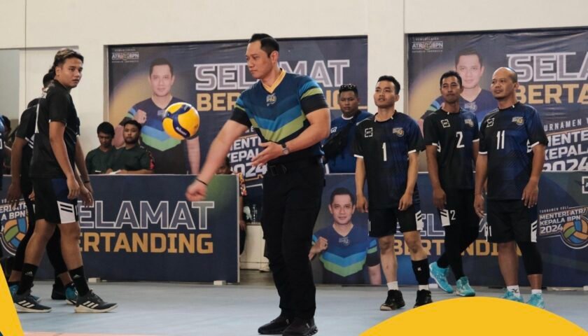Jakarta (lensasemarang.com) – Menteri Agraria dan Tata Ruang/Kepala Badan Pertanahan Nasional (ATR/BPN), Agus Harimurti Yudhoyono (AHY) membuka Turnamen Voli Menteri ATR/Kepala BPN Cup 2024 dalam rangka Hari Agraria dan Tata Ruang Nasional (HANTARU), di GOR Nanggala Kopassus, Cijantung, Jakarta, Jumat (23/08/2024).