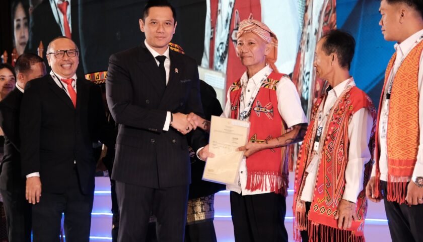 BANDUNG (lensasemarang.com) – Menteri Agraria dan Tata Ruang/Kepala Badan Pertanahan Nasional (ATR/BPN), Agus Harimurti Yudhoyono (AHY) menyerahkan langsung sertipikat untuk tanah ulayat, termasuk bagi Masyarakat Hukum Adat Menua Kulan dan Iban Menua Sungai Utik, Desa Batu Lintang, Kapuas Hulu, Kalimantan Barat, Kamis (05/09/2024).
