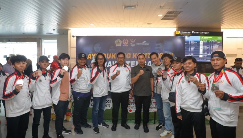 SEMARANG (lensasemarang.com) – Penjabat Gubernur Jawa Tengah Nana Sudjana menyambut hangat kedatangan Kontingen Jawa Tengah yang telah berjuang pada PON XXI/2024 Aceh-Sumatra Utaradi Bandara Jenderal Ahmad Yani, Kota Semarang, Sabtu (21/9/2024).