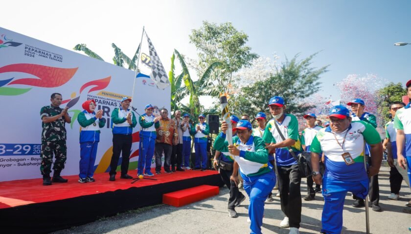 GROBOGAN (lensasemarang.com) – Penjabat Gubernur Jawa Tengah Nana Sudjana melepas kirab api obor (torch relay) Pekan Paralimpiade Nasional (Peparnas) XVII, Sabtu (28/9/2024).