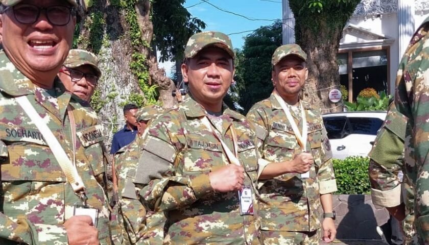 Sebelum masuk ke area acara, Taj Yasin lebih dulu menjalani pemeriksaan kesehatan dan mendapat pengarahan di Mako Rindam IV/Diponegoro. Ia tampak sudah mengenakan pakaian komcad. Begitu juga dengan ratusan wakil kepala daerah lainnya.