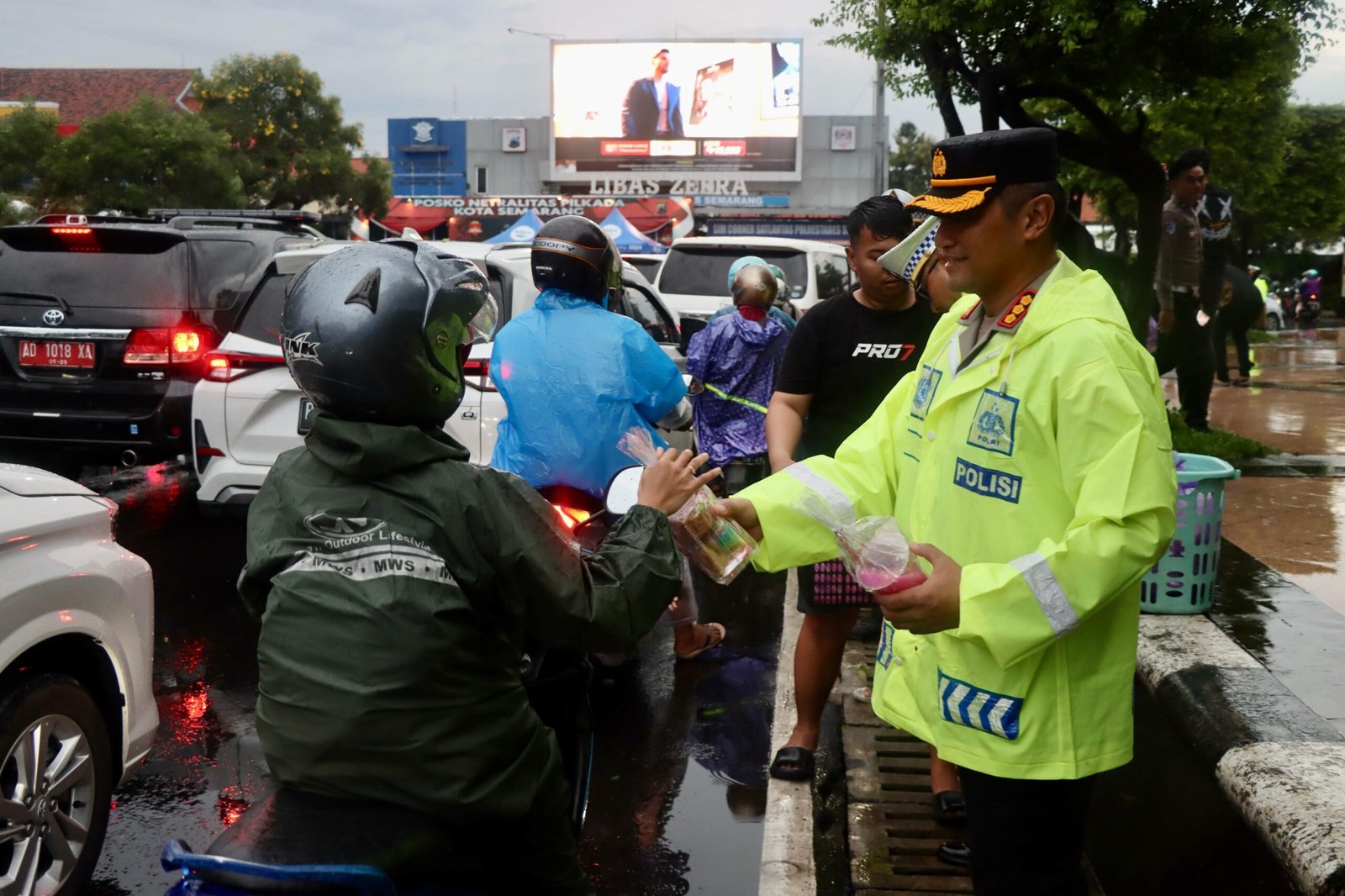 Lokasi penyaluran yang strategis di depan posko lalu lintas Simpang Lima membuat petugas dapat berinteraksi langsung dengan masyarakat.