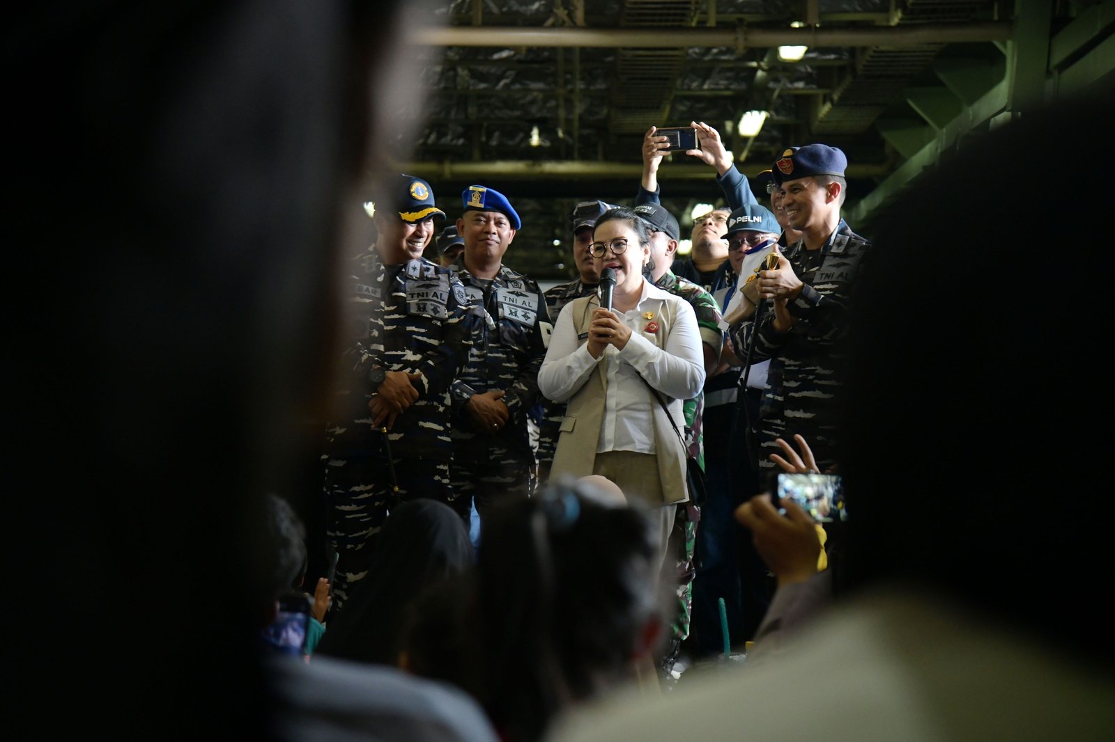 Ia juga mengapresiasi jumlah petugas yang dikerahkan untuk menjamin keamanan dan kenyamanan selama pelayaran menuju Jakarta. Kapal perang ini tidak hanya mengangkut penumpang, tetapi juga kendaraan bermotor, sehingga sangat membantu para pemudik dalam mobilitas mereka pasca-libur Lebaran.