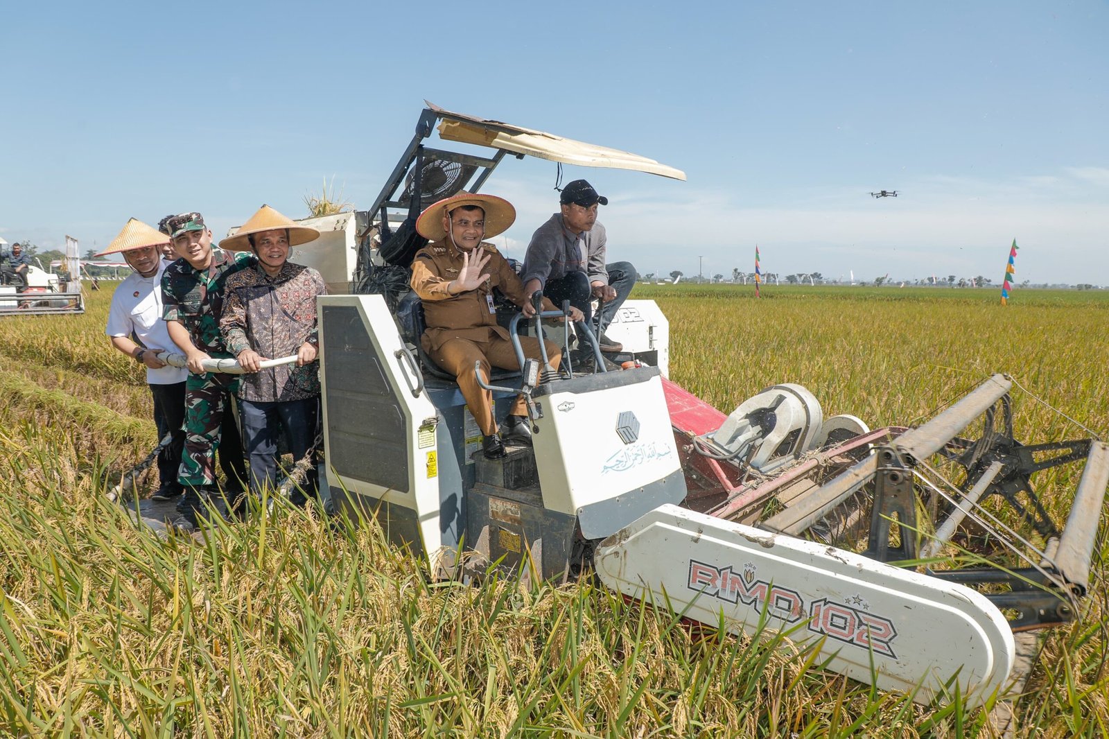 Ahmad Luthfi bersama Bupati Sukoharjo memimpin langsung panen di Sukoharjo menggunakan combine harvester.