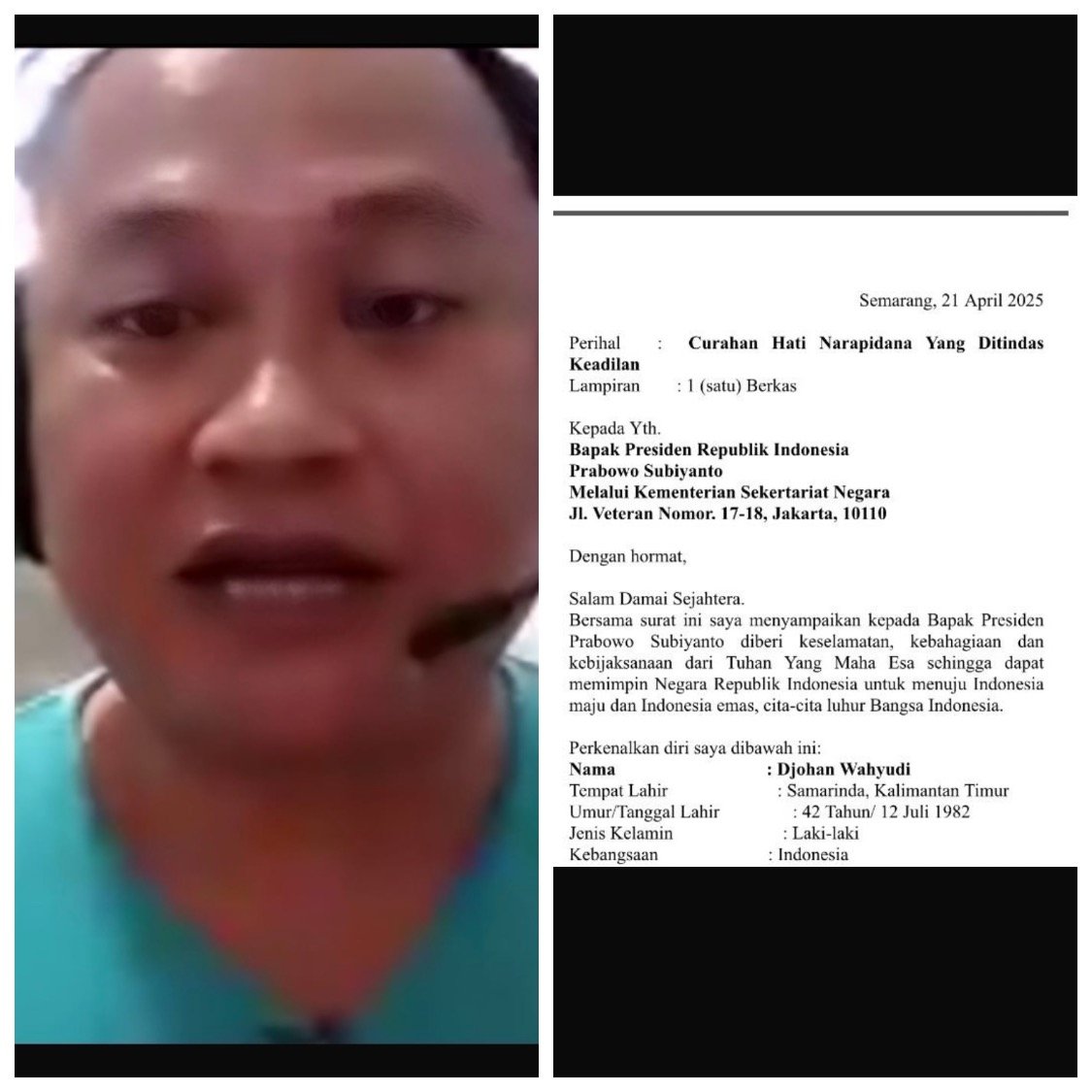 Pada surat tulisannya yang ditujukan ke Presiden RI Prabowo Subianto, Djohan menuliskan: Curahan Hati Narapidana yang Ditindas Keadilan. Suratnya ditujukan melalui Kementerian Sekretariat Negara Jl. Veteran nomor 17 – 18, Jakarta tertanggal 21 April 2025.
