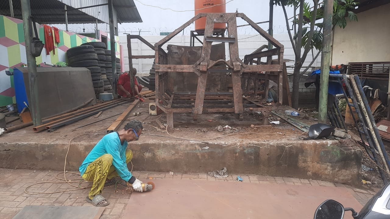 Perbaikan dilakukan secara bertahap berupa penambalan dan penggantian plat, dengan estimasi waktu pengerjaan sekitar 4 hari per kontainer.