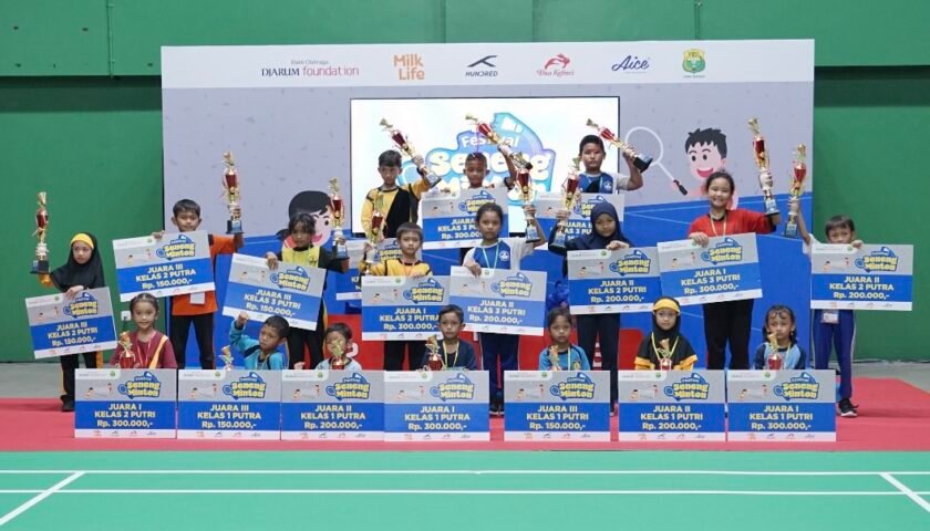 SEMARANG (lensasemarang.com) – Bakti Olahraga Djarum Foundation berkolaborasi dengan Pengurus Provinsi (Pengprov) PBSI Jawa Tengah menyelenggarakan Festival SenengMinton Semarang 2025 yang berlangsung di Polytron Stadium, Universitas Diponegoro, Kamis (20/11/2025), dengan peserta sebanyak 510 siswa kelas 1 hingga 3 sekolah dasar dari 17 SD di Kota Semarang ambil bagian dalam perlombaan berformat fun games tersebut.