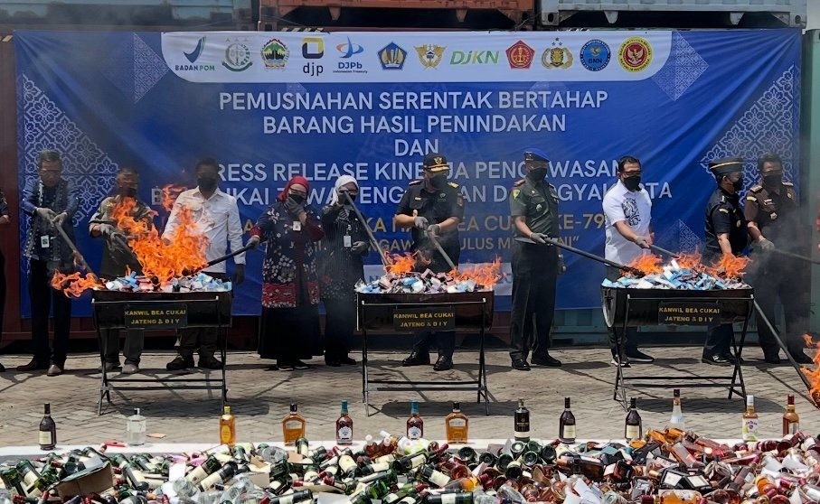 Bea Cukai Jateng-DIY Musnahkan Rokok dan Minuman Beralkohol Ilegal Senilai Puluhan Miliar Rupiah