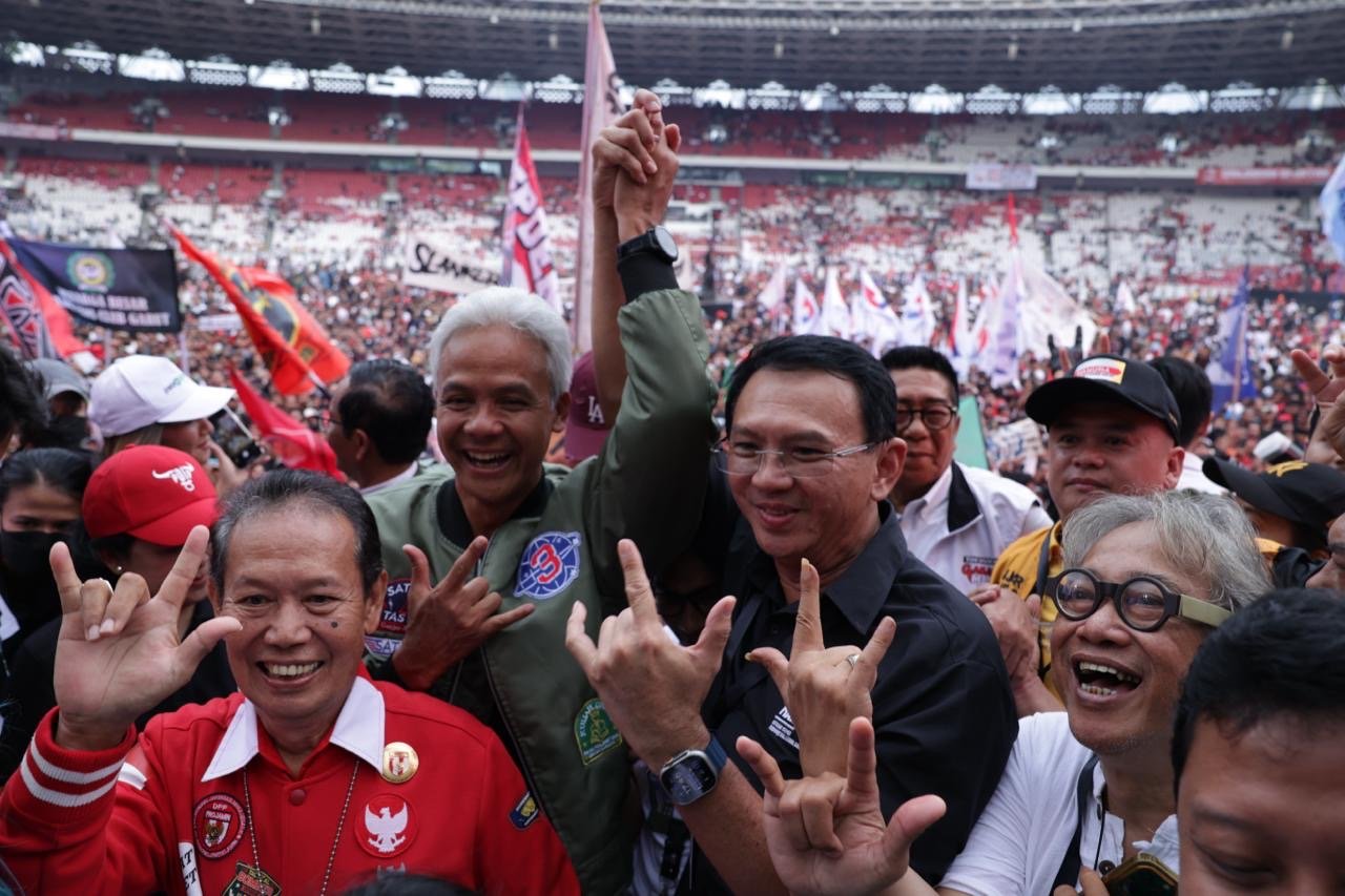 SEMARANG – Basuki Tjahaja Purnama (Ahok) yang baru saja mundur dari jabatan sebagai Komisaris Utama Pertamina hadir pada Hajatan Rakyat Ganjar-Mahfud di Gelora Bung Karno, Jakarta, Sabtu. Dengan mengenakan jas hitam, Ahok datang bareng dengan Ketua Umum PDI Perjuangan Megawati Soekarnoputri. Saat dikonfirmasi, Ahok mengaku tidak pernah menyesali keputusannya mundur dari Komut Pertamina. “Iya, saya kira ini kesempatan saya seumur hidup ya. Bahwa kalau kita tidak memperjuangkan Mas Ganjar, kita akan menyesal seumur hidup nanti,” katanya saat ditemui di GBK. Ahok menegaskan, Ganjar Pranowo adalah calon presiden yang paling pantas…