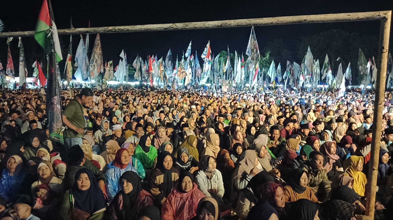 KENDAL- Ribuan warga Selokaton hadiri doa dan sholawat ibu Pertiwi bersama Habib Zaidar bin Haidar bin Yahya di lapangan Desa Curug Sewu Kecamatan Patean, Kabupaten Kendal, Sabtu 27 Januari 2024 malam.
