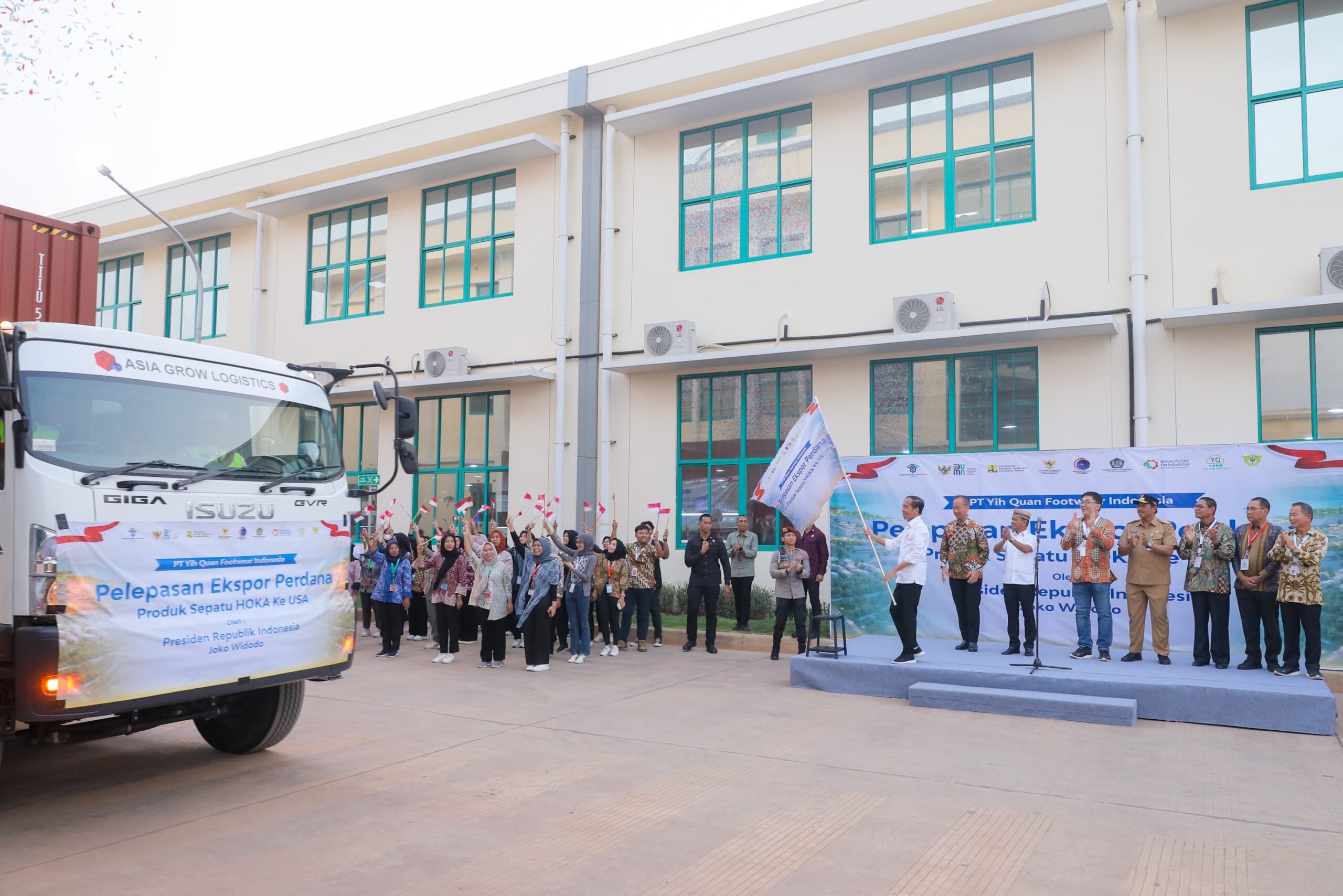 “Hari ini kita melepas ekspor perdana sebanyak 16 ribu pasang sepatu merk Hoka ke Amerika, yang diproduksi oleh perusahaan PT Yih Quan Foot Wear Indonesia,” kata Presiden Jokowi di sela acara pelepasan ekspor.