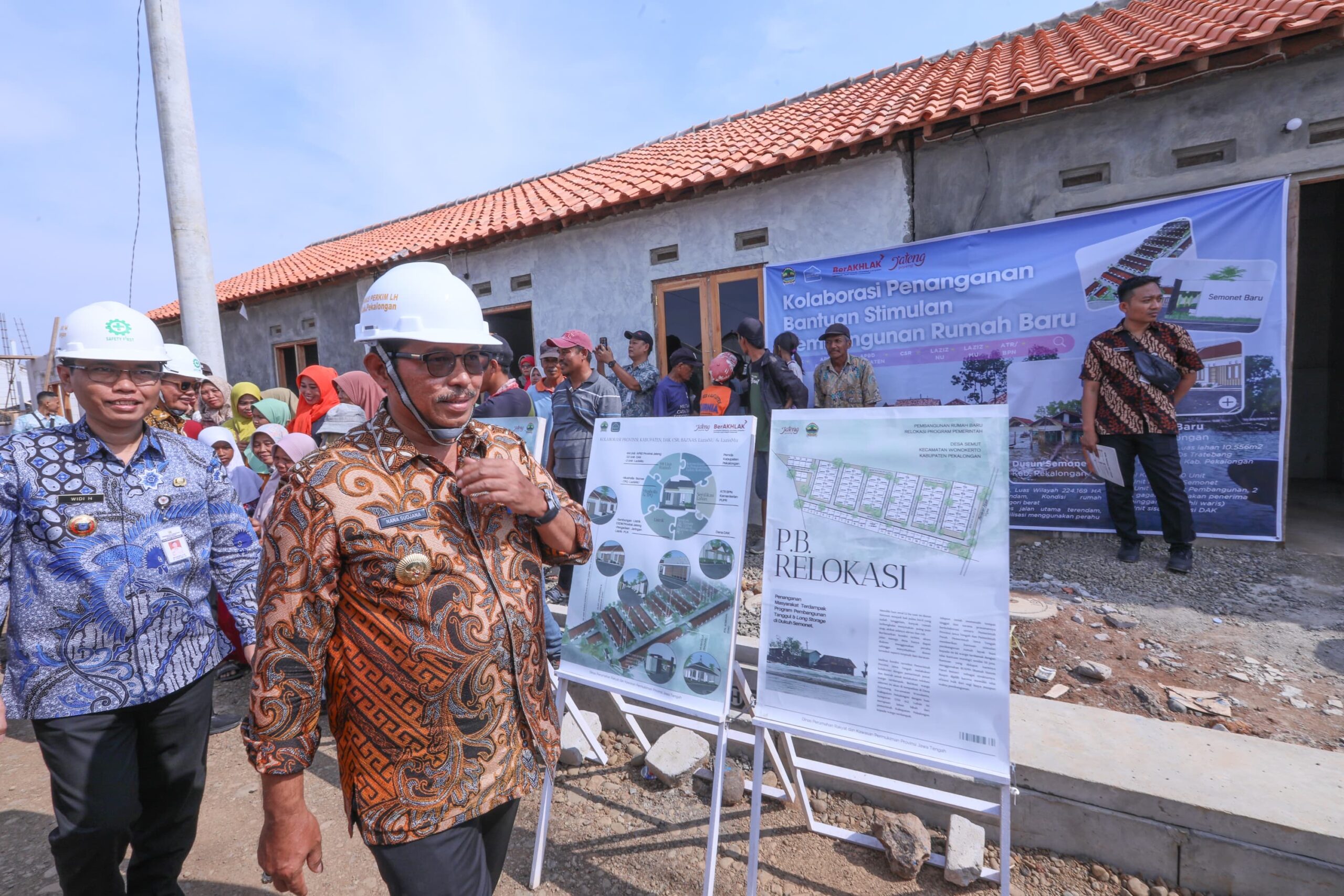Penjabat Gubernur Jawa Tengah Nana Sudjana mengecek langsung progres pembangunan bantuan rumah tersebut pada Kamis (3/10/2024).