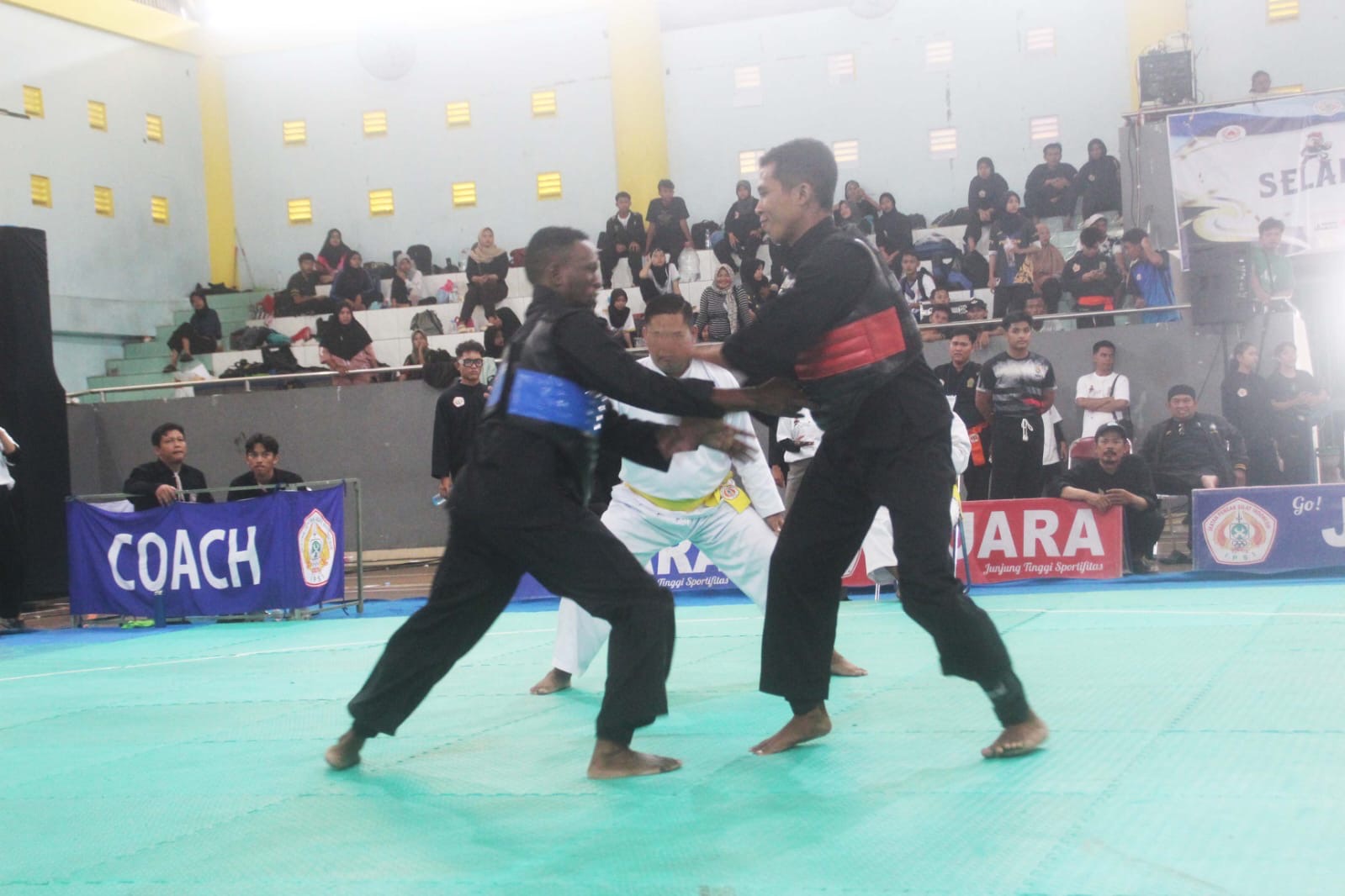 SEMARANG (lensasemarang.com) – Wajah Irakiza Gideon tampak berkeringat. Bercelana hitam dan berbaju hitam, di tubuhnya melekat erat body protector warna biru. Pemuda asal Uganda ini memasuki arena. Dirinya siap bertarung mengadu ilmu pencak silat di Walisongo International Pencak Silat PSHT Championship di GOR Universitas Islam Negeri Walisongo, Kota Semarang, Minggu (7/9/202). Gideon harus bertanding menghadapi Ilham Fajar Shodiq, pesilat dari PSHT PLAB Kendal di Kelas E Putra Dewasa. Pesilat di sudut merah ini jauh memiliki pengalaman bertanding dibandingkan Gideon. Adu otot dan strategi pun terjadi. Sosok Gideon yang berkulit hitam…